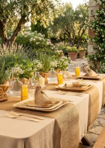 3. "זריקות" של צבע וטבע: במקום סידורי פרחים גרנדיוזיים, לכו על ירק. כמה ענפי אקליפטוס או אפילו לימונים צהובים שלמים בתוך קערה שקופה במרכז השולחן, נותנים תחושה של אירוע בוטיק בחוץ, גם אם אתם מארחים בסלון הממוזג.