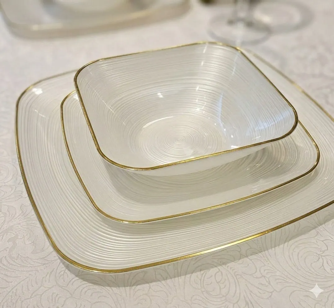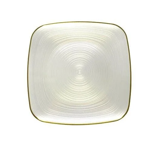 צלחות מרובעות פנינה עם מסגרת זהב – 10 יחידות
